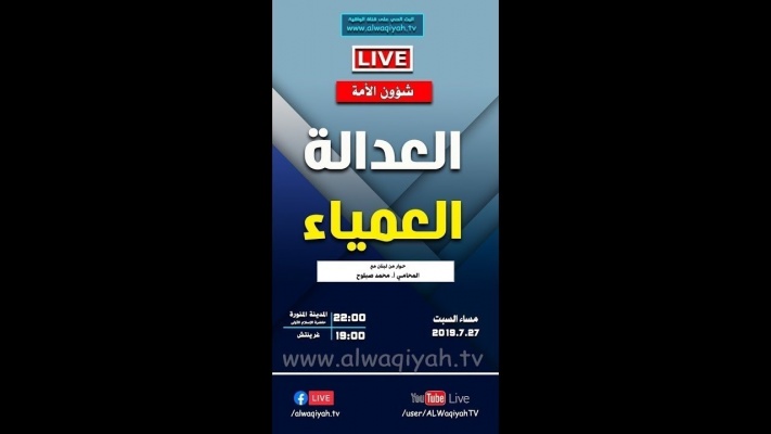 شؤون الأمة : العدالة العمياء !المحامي محمد صبلوح 27/07/2019قناة الواقية: انحياز إلى مبدأ الأمة @قناة الواقية #قناة_الواقيةwww.alwaqiyah.tv | facebook.com/alwaqiyahtv | alwaqiyahtv@twitter