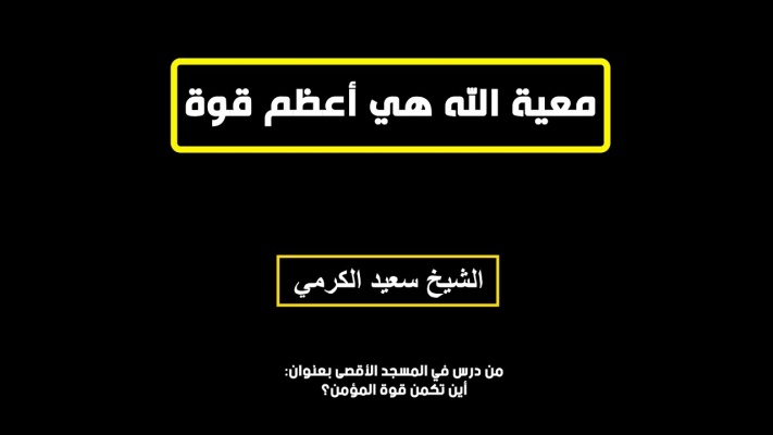 معية الله هي أعظم قوة الشيخ سعيد الكرمي / بيت المقدس=================#قناة_الواقيةwww.alwaqiyah.tvلمتابعة المزيد من إنتاجات قناة الواقيةhttps://www.youtube.com/user/AlwaqiyahTV?sub_confirmation=1اشترك في القناة الرسمية على تليجرام:https://t.me/AlWaqiya...