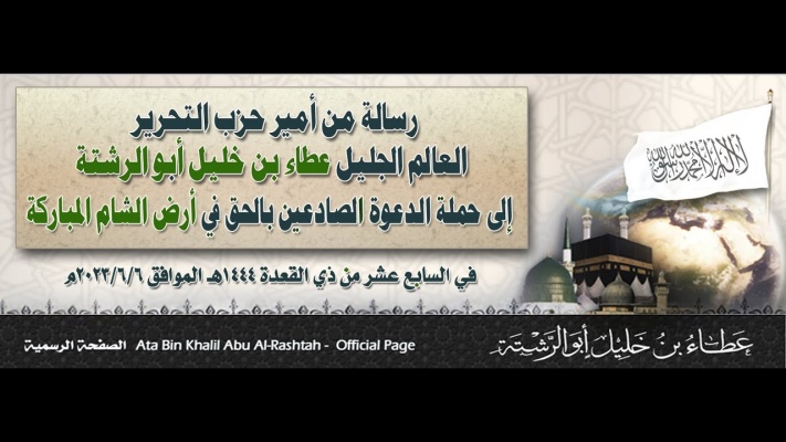 رسالة من أمير حزب التحرير العالم الجليل عطاء بن خليل أبو الرشتة إلى حملة الدعوة الصادعين بالحق في أرض الشام المباركة