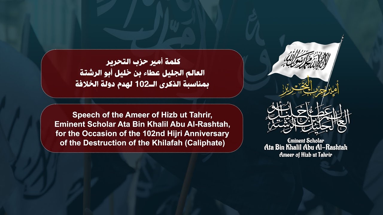 Speech of the Ameer of Hizb ut Tahrir, Eminent Scholar Ata Bin Khalil Abu Al-Rashtah, for the Occasion of the 102nd Hijri Anniversary of the Destruction of the Khilafah (Caliphate)كلمة أمير حزب التحرير العالم الجليل عطاء بن خليل أبو الرشتةبمناسبة الذكر...