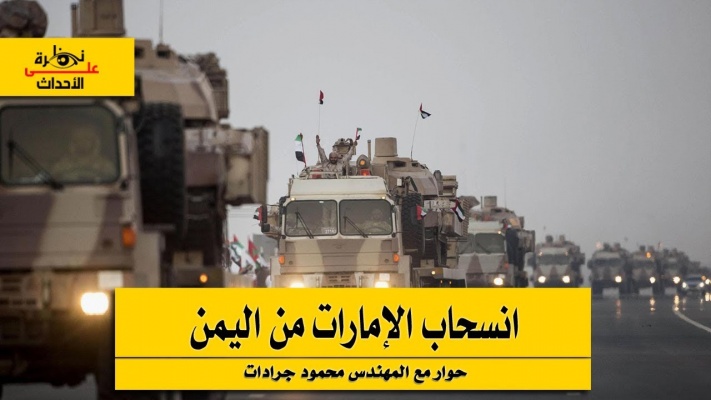 محمود جرادات: يعني الأخبار والتقارير تقول بأن في مناطق انسحبت منها 100% وفي مناطق انسحبت 80% وفي مناطق 75% وفي مناطق لن تنسحب أبدا، وفي مناطق الأمر الأمر يعني ليس بوضوح تام، لهذه الدقيقة ولهذه اللحظة لم تعلن الإمارات عن انسحاب رسمي، تم تسريبات تم تسريبات من قادة عسكريين إماراتيين أو من قادة سياسيين تواترت هذه الأخبار أن الانسحاب على قدم وساق، ويقال ان الإمارات من سنة تخطط لهذا الانسحاب ليس انسحاب مفاجئا فهي قامت بأعمال قامت بأعمال وركزت بعض الأمور بحيث إن هذا الانسحاب لا يكون تقهقرا، يعني انسحاب مدروس