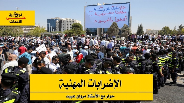هيثم الناصر: بسم الله الرحمن الرحيم، الحمد لله رب العالمين والصلاة والسلام على سيدنا محمد وعلى آله وصحبه أجمعين، الإخوة الكرام مشاهدي قناة الواقية السلام عليكم ورحمة الله وبركاته، أحيكم في هذا اللقاء الجديد من "نظرة على الأحداث"، حدث اليوم حول الإضرابات المهنية، خاصة ونحن في الآن في الأردن، نستضيف لهذه الغاية الأستاذ مروان عبيد