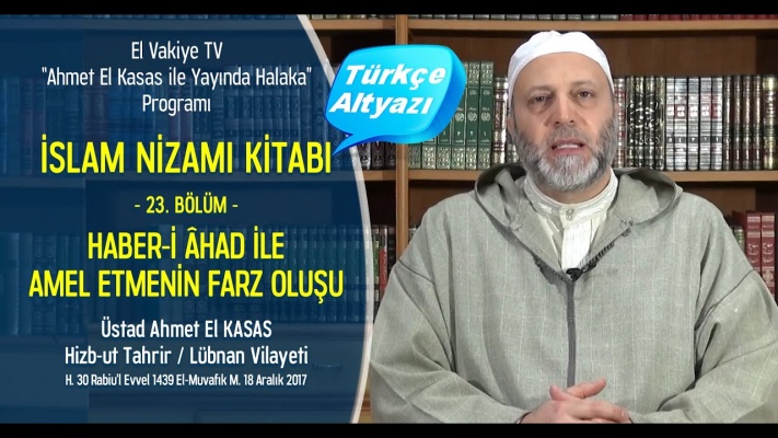 El-Vakiye Televizyonu-İslam Nizamı Kitabının (23.) Halakası-[Haber-i had İle Amel Etmenin Farz Oluşu]Sunan: Üstad Ahmed El-KasasHizb-ut Tahrir Üyesi / Lübnan VilayetiH. 30 Rabiu’l Evvel 1439 El-Muvafık M. 18 Aralık 2017تلفزيون الواقية- الحلقة (23) في ك... [موبايل]