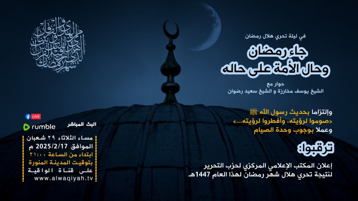 جاء رمضان وحال الأمة على حاله || أمسية حوارية مع الشيخ يوسف مخارزة والشيخ سعيد رضوان يتخللها إعلان المكتب الإعلامي المركزي لحزب التحرير لنتيجة تحري هلال شهر رمضان المبارك