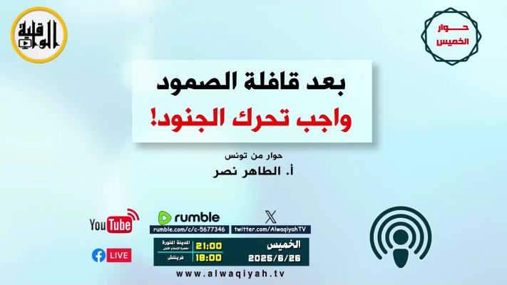حوار الخميس : بعد قافلة الصمود، واجب تحرّك الجنود مع أ. الطاهر نصر الخميس 01 محرم 1447 هـ الموافق 26 حزيران 2025م