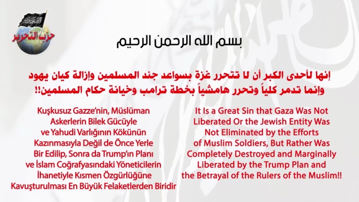 إنها لأحدى الكبر أن لا تتحرر غزة بسواعد جند المسلمين وإزالة كيان يهود وإنما تدمر كلياً وتحرر هامشياً بخطة ترامب وخيانة حكام المسلمين!! إصدار من حزب التحرير ألقاه م. صلاح الدين عضاضة الأحد 20 ربيع الآخر 1447 هـ الموافق 12 تشرين أول 2025م