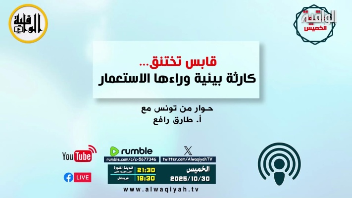 حوار الخميس: قابس تختنق.... كارثة بيئية وراءها الاستعمار مع أ. طارق رافع الخميس 08 جمادى الأولى 1447 هـ الموافق 30 تشرين أول 2025م