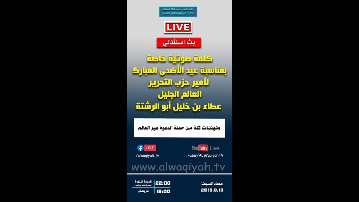قناة,الواقية,تهنئة,أمير حزب التحرير,عطاء بن خليل ابو الرشتة,عيد الأضحى المبارك,معايدة,عيدكم مبارك,الحج,الخلافة,الدزلة الإسلامية