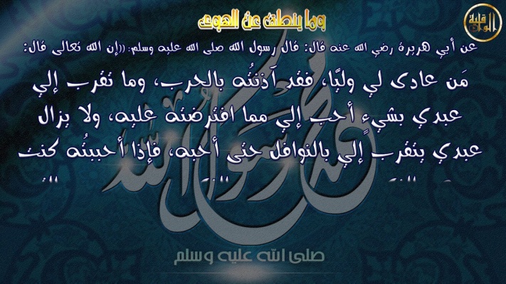 (عن أبي هريرة ‑رضي الله عنه‑ قال : قال رسول الله - صلى الله عليه وسلم - : "إن الله قال ( من عادى لي وليا فقد آذنته بالحرب ، وما تقرب إلي عبدي بشيء أحب إلي مما افترضت عليه ، وما يزال عبدي يتقرب إلي بالنوافل حتى أحبه ، فإذا أحببته كنت سمعه الذي يسمع به ، وبصره الذي يبصر به ، ويده التي يبطش بها ، ورجله التي يمشي بها ، وإن سألني لأعطينه ، ولئن استعاذني لأعيذنه" ). رواه البخاري .