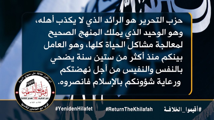 حزب التحرير هو الرائد الذي لا يكذب أهله، وهو الوحيد الذي يملك المنهج الصحيح لمعالجة مشاكل الحياة كلها، وهو العامل بينكم منذ أكثر من ستين سنة يضحي بالنفس والنفيس من أجل نهضتكم ورعاية شؤونكم بالإسلام فانصروه.