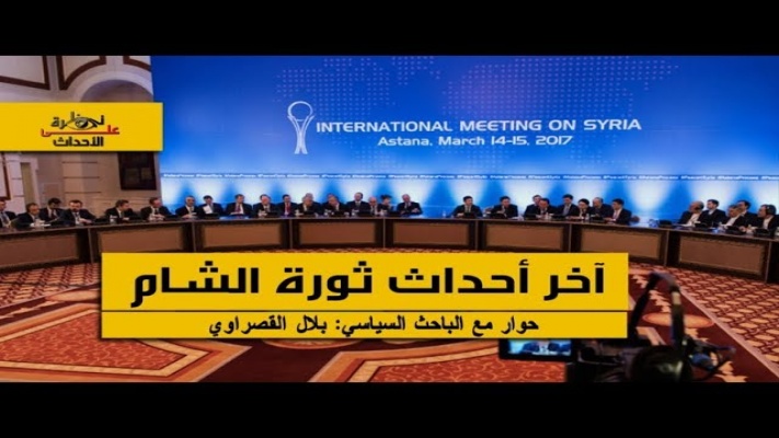 بلال القصراوي:بسم الله الرحمن الرحيم، الحمد لله والصلاة والسلام على سيد المرسلين، الحقيقة يعني نمر مرورا سريعا على التصريحات لنعرف إلى أين أو ما هي النتائج التي وصلت إليها الجولة السادسة في أستانة؟ يعني تصريح أردوغان يقول: مرحلة هي مرحلة هاي جولة، مرحلة نهائية للتفاوض على حل الأزمة السورية، مرحلة نهائية للتفاوض على حل الأزمة السورية، لافروف يقول: اتفاق الأطراف على إنهاء الحرب، ديمستورا يقول: المعارضة لم تفز بالحرب، ثورة الشام: صورة احتضنت فكرة، وأهل الشام احتضنوا فكرة الخلافة، الذي حدث أن كل القوى المجرمة، والمستكبرة التي قاتلت أهل الشام لاحتضانهم هذه الفكرة لم تنجح في إحداث فرق، الذي نجح في إحداث فرق هم أصدقاء ما يسمى ثورة الشام، أصدقاء سوريا وعلى رأسهم تركيا، كل اللقاءات التي تمت في فينا لحل الأزمة السورية حلا سياسيا وفق الرؤية الأمريكية لإبقاء النظام، وتغيير وجوه في النظام، لكن أن يبقى النظام نظاما علمانيا ديمقراطيا ضمن الاتفاقات الدولية، الإسلام بعيد عن الحكم، وموالياً لأمريكا، هذا الحل السياسي الذي تطرحه أمريكا.
