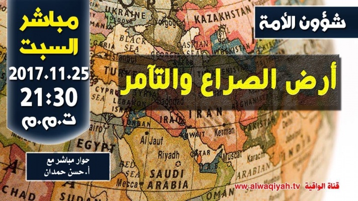 شؤون الأمة: أرض الصراع والتامر الأستاذ هيثم الناصر (أبو عمر) محاوراً الأستاذ حسن حمدان (أبو البراء) 25/11/2017 https://youtu.be/md0SmMZ5eUE | #قناة_الواقية : انحياز إلى مبدأ الأمة |