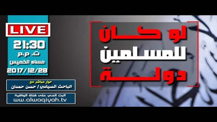 موبايل, تلفزيون,الواقية:,الحوار,الحي,لو,كان,للمسلمين,دولة,الحوار,المباشر,الذي,أجراه,تلفزيون,الواقية,مع ,الأستاذ,حسن,حمدان,أبو,البراء,من,ولاية,الأردن,تقديم:,الأستاذ,هيثم,الناصر,أبو,عمر,الجمعة،,10,ربيع,الآخر,1439هـ|,2017,12,28م